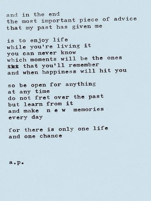 Embrace all sides of who you are. The good, the beautiful, the quirky, the ugly, and the embarrassing. Quit living to ridiculously high standards. Make attainable goals and reward yourself for attacking them like a pro. Compliment other people because it feels good. Let go of people who don't appreciate all that you are. Learn how to lift up someone else without simultaneously tearing yourself down. Whether your idea of health means giving up pop or taking a walk every day or it means running a marathon or becoming a vegetarian, or anything outside of that, be proud of yourself for your personal journey. Pat yourself on the back. Keep moving forward and don't ever look back unless it's in sheer positivity.